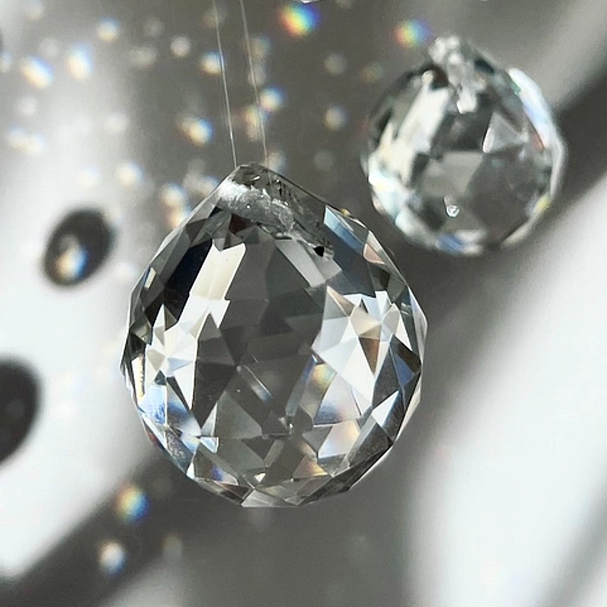 Feng Shui szivárvány kristálygolyó, felfüggeszthető. 2 cm átmérőjű.