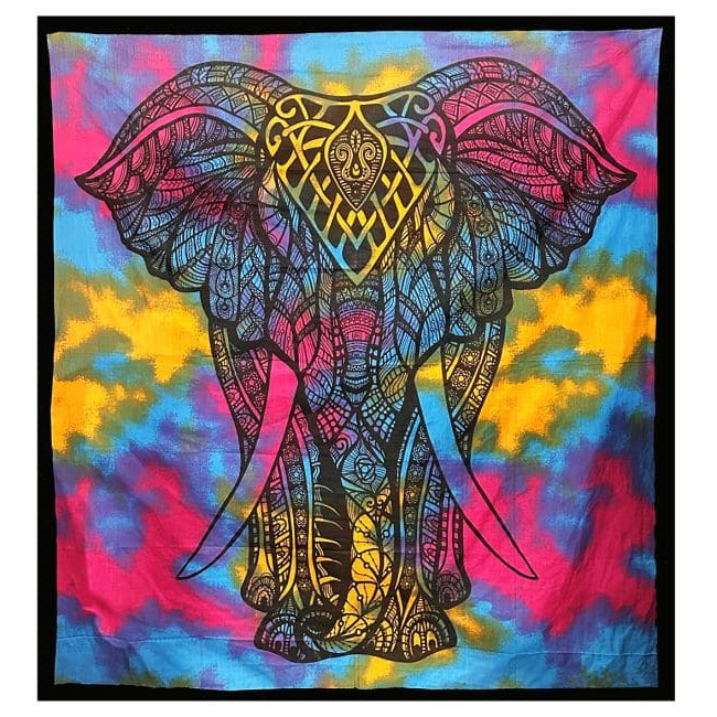 Dupla méretű elefánt mintás indiai pamut ágytakaró vagy faliszőnyeg