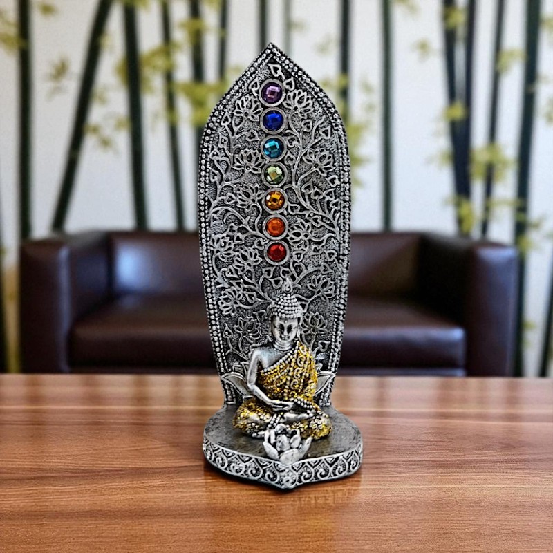 17 cm magas elegáns füstölőégető, hagyományos szálas füstölőt helyezhetünk a szobor előtti lótuszba.