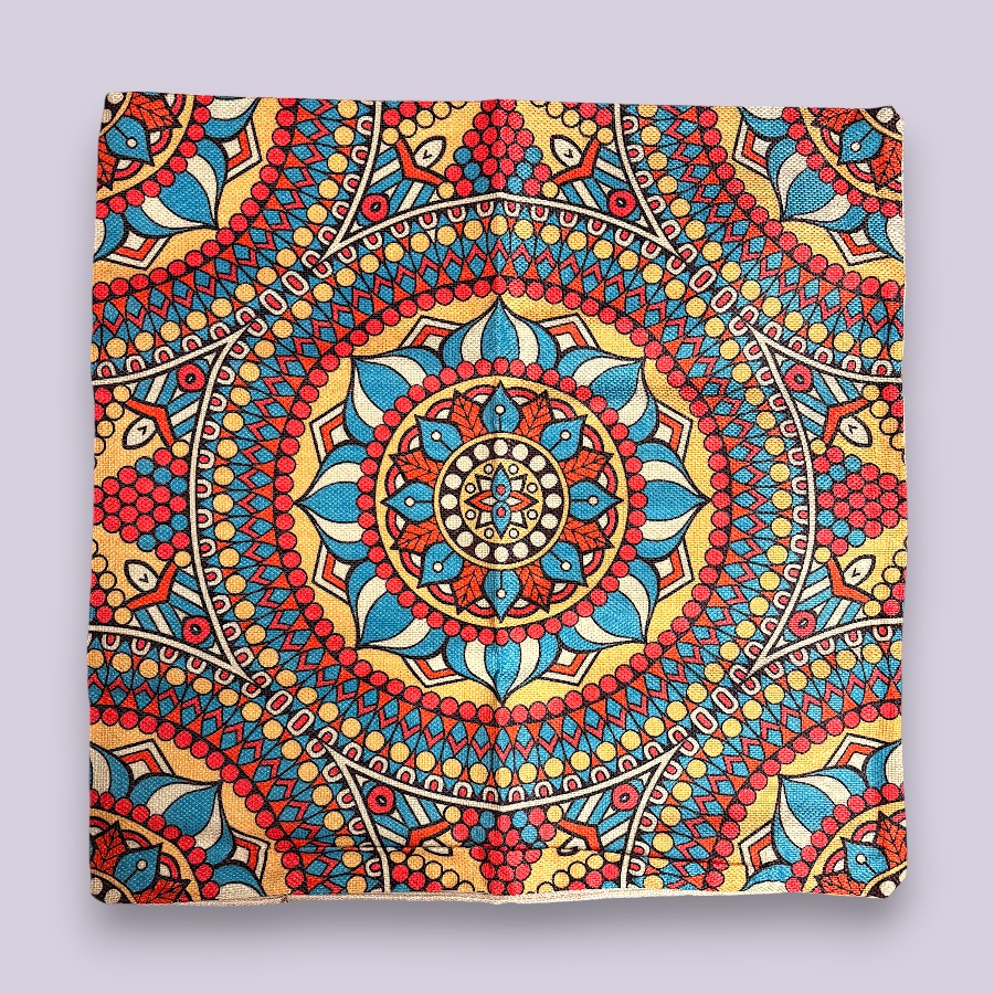 Mandala mintás párnahuzat, erős, strapabíró anyagból. Oldalán cipzárral van ellátva.