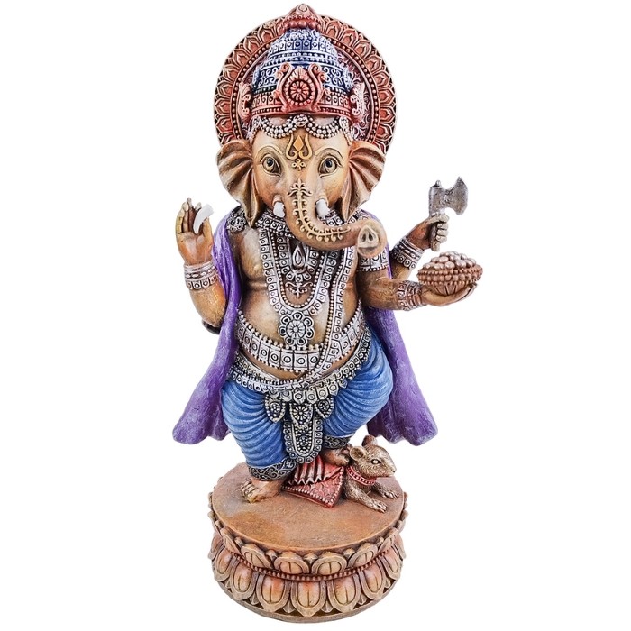 Ő a bölcsesség és az értelem megtestesítője. Nagy feje a tudást és a gondolkodás erejét szimbolizálja, míg apró szemei a koncentrációt és a belső látást hangsúlyozzák. A kezében tartott édesség (modak) azokat a jutalmakat jelképezi, amelyek a hosszú és kitartó spirituális út végén várnak, míg letört agyara a szeretet és az áldozat képességére utal. Nem csupán egy istenség, hanem az univerzális energia azon aspektusa, amely a szeretet és a harmónia erejével oldja fel az elakadásainkat.
